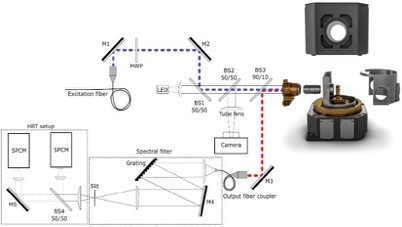 Sparrow芯片将在2020年推出光纤耦合版本。单光子源(SPS)光纤耦合组件为外壳中的SPS芯片提供一个单模光纤用于输入,另一个光纤用于输出信号。芯片放置在一个热锚,允许集成与大多数标准的低温设置。在这种设置是不可能的视觉检查芯片和所有集成芯片是通过锥形光纤。与自由空间版本的区别是在光纤耦合版本中,与芯片的光耦合是通过光纤耦合实现的。我们注意到,如图4所示的光纤耦合芯片的光学设置也是必需的。