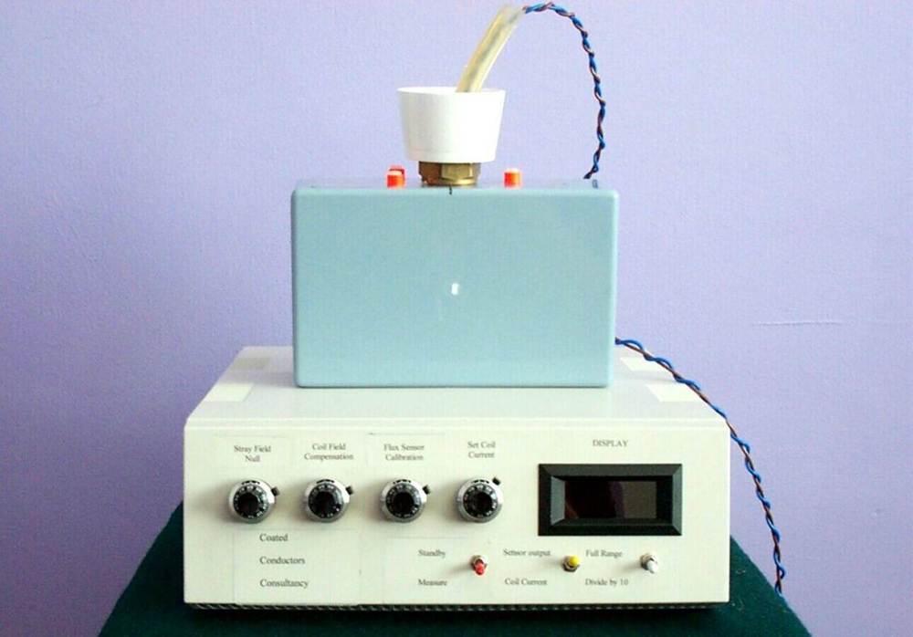 该设备是专门为实验室研究超导薄膜材料而设计的。将样品放置在直流励磁线圈和一个高性能的磁场传感器之间的液氮中。当样品在超导临界温度以下时,测试样品不会受到线圈磁场的影响。随着液氮的消失,样品升温并且穿过临界温度,因此线圈更多的磁通量传递给传感器。磁通量的变化与超导临界电流密度(Jc)和超导薄膜厚度的乘积有相关。传感器会读数,因此给你的样品是否具有超导性提供了一个快速并且能够互相比较的测量方法。