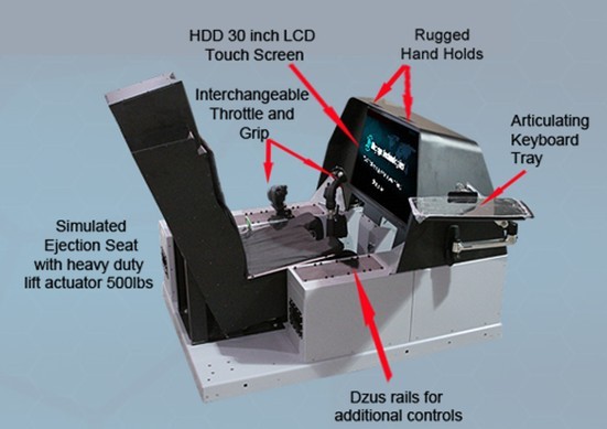 MRC 1000 飞行模拟器可以利用两侧的Dzuz rails,可调节飞行脚舵,可调节弹射座椅对模拟舱格局进行快速调整,并设计了承重脚轮以便于移动。客户可根据自己的需求选择out the window系统,该系统并由三块垂直方向与水平方向上都可以进行调节的55英寸显示器组成。